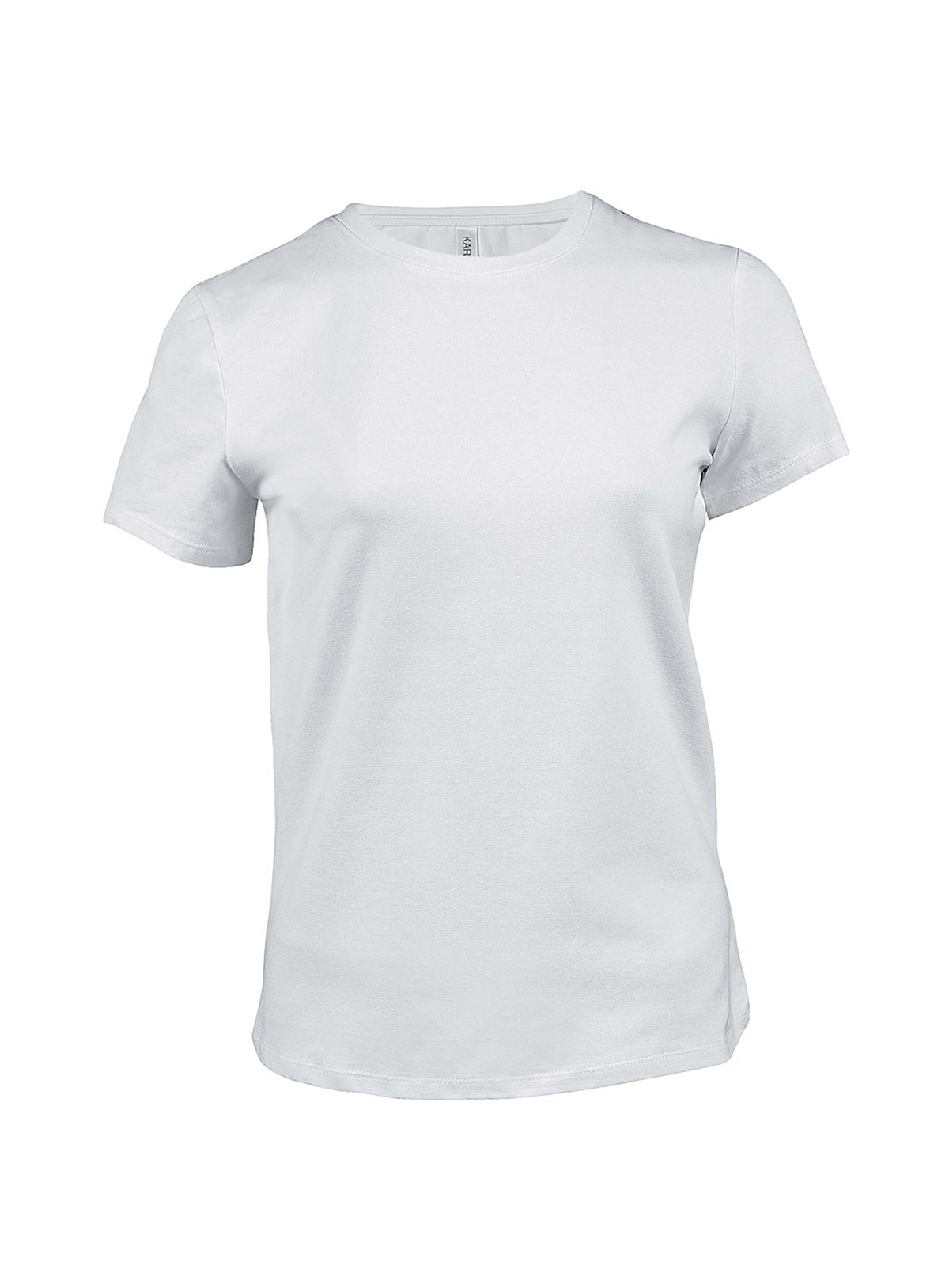 Vestibilità aderente. Scollo tondo con nastrino di rinforzo. Cuciture a doppio ago.
