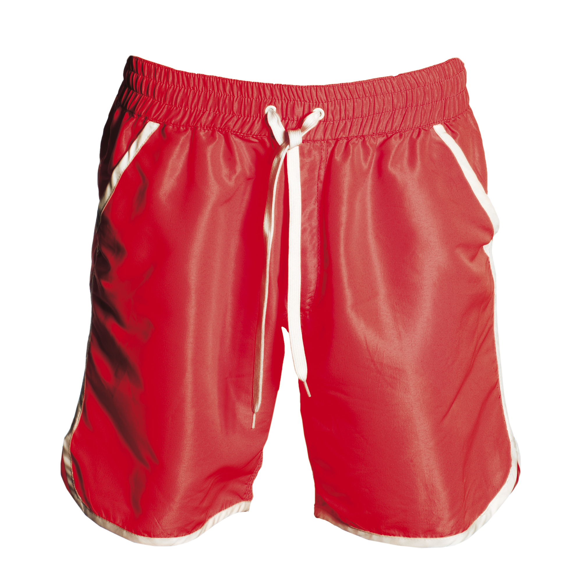 Bermuda con elastico e coulisse in vita, patta con zip, due tasche frontali e una sul retro chiusa con zip, bordino di finitura a contrasto.