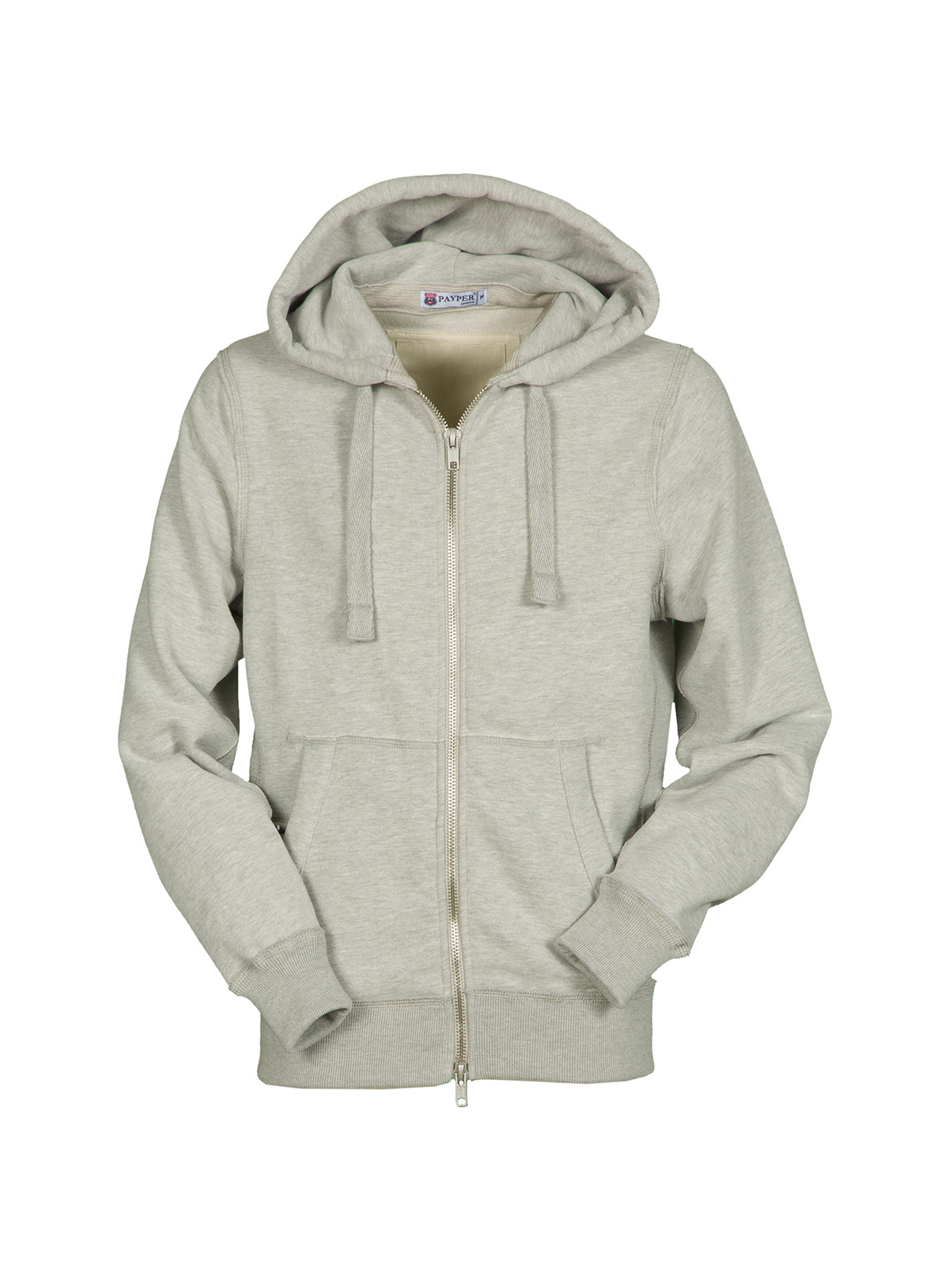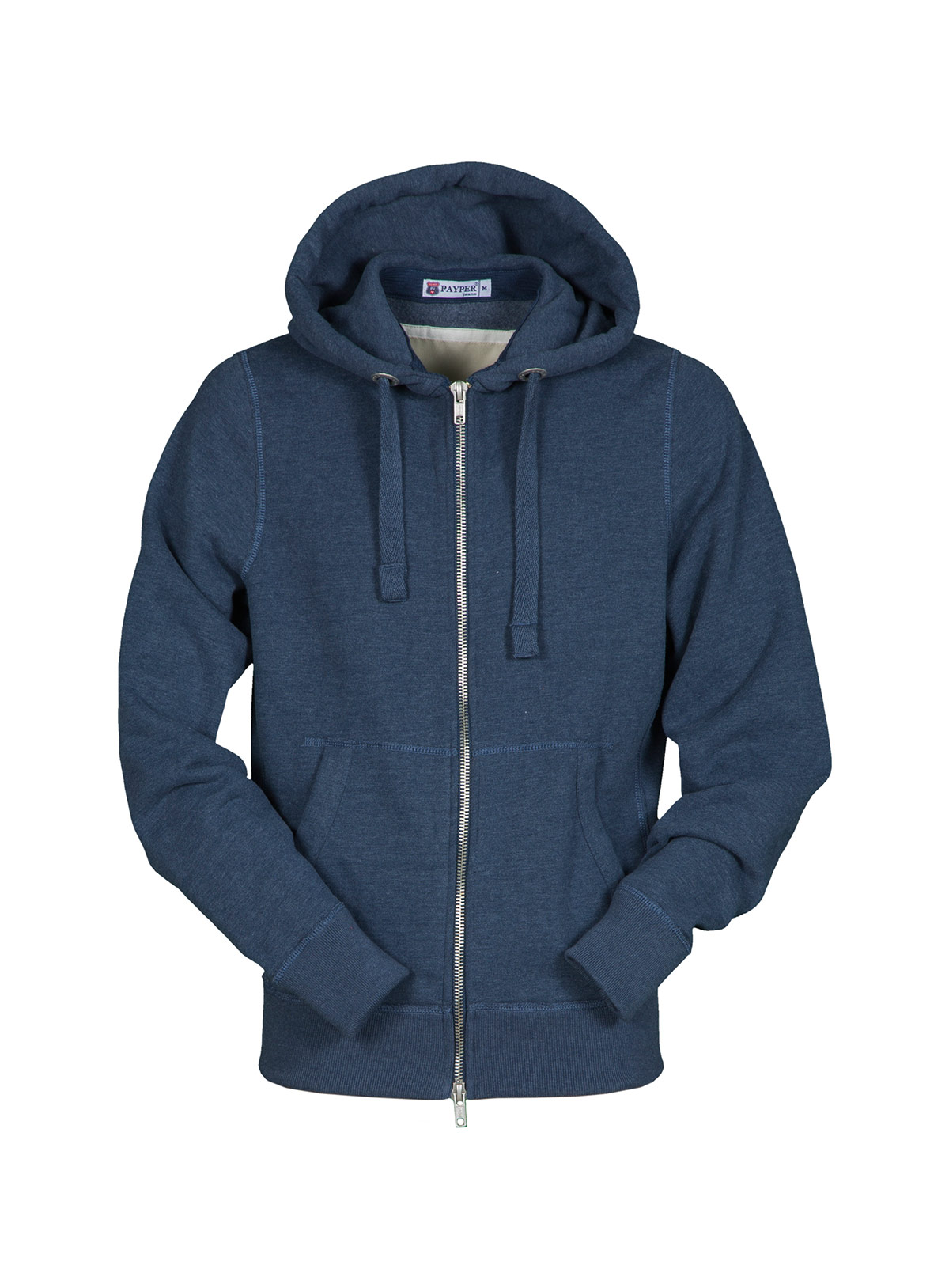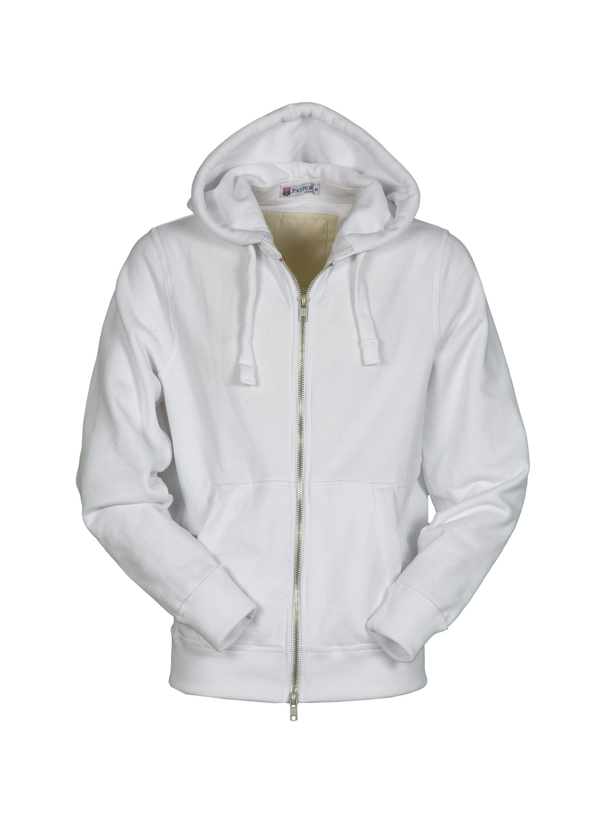 Felpa da uomo a zip intera in metallo con doppio cursore, cappuccio con coulisse con anelle in metallo e cordino in tinta, tasche a marsupio, taschino con secur zip , polsini e vita in rib elasticizzato, finiture di ispirazione vintage.