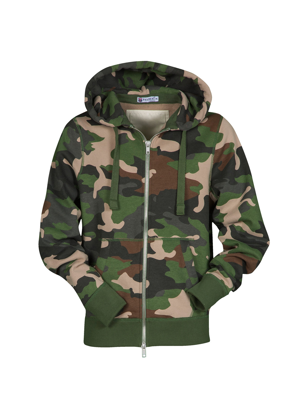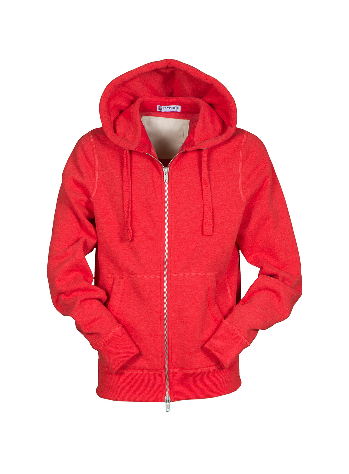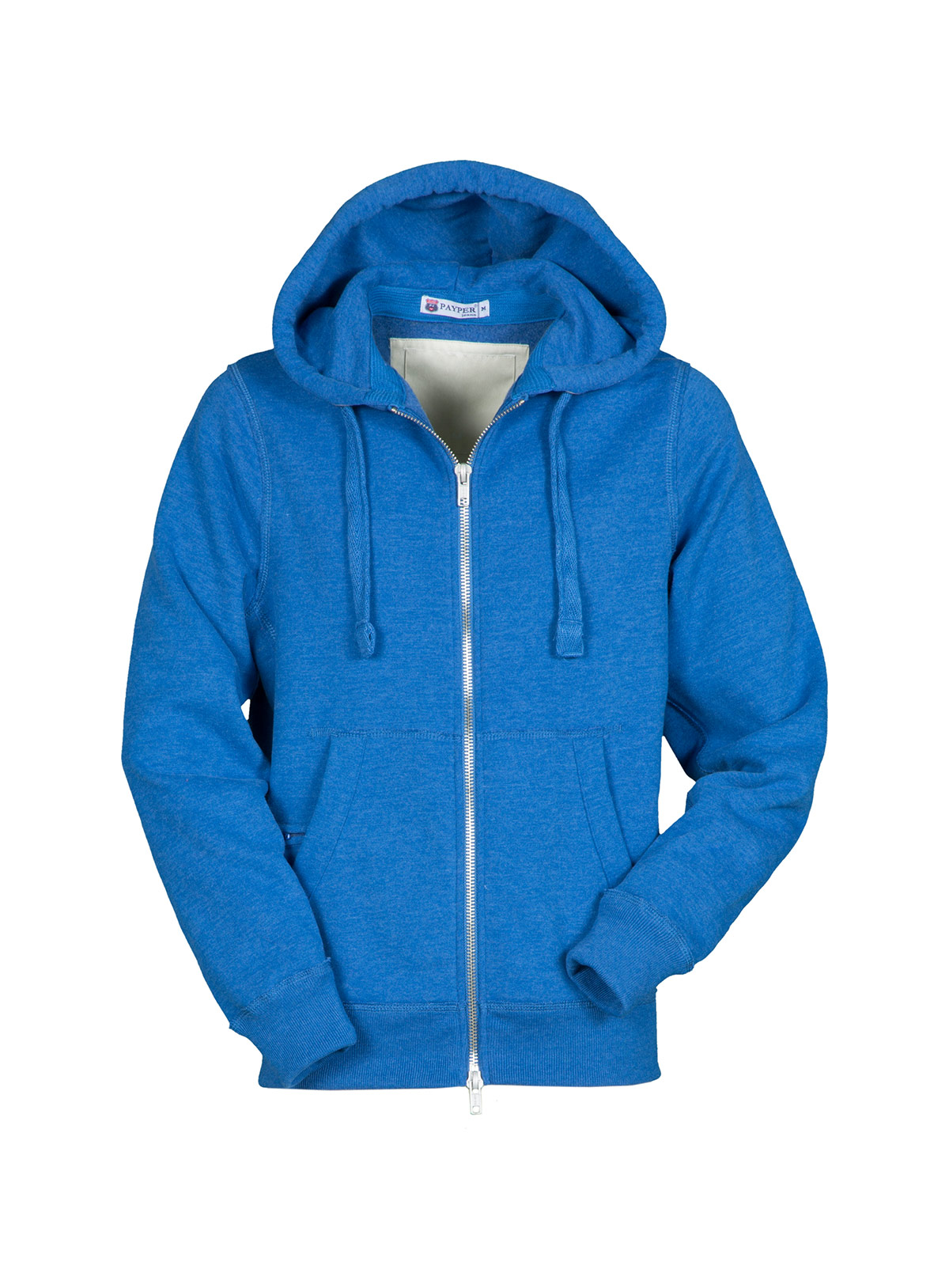 Felpa da uomo a zip intera in metallo con doppio cursore, cappuccio con coulisse con anelle in metallo e cordino in tinta, tasche a marsupio, taschino con secur zip , polsini e vita in rib elasticizzato, finiture di ispirazione vintage.