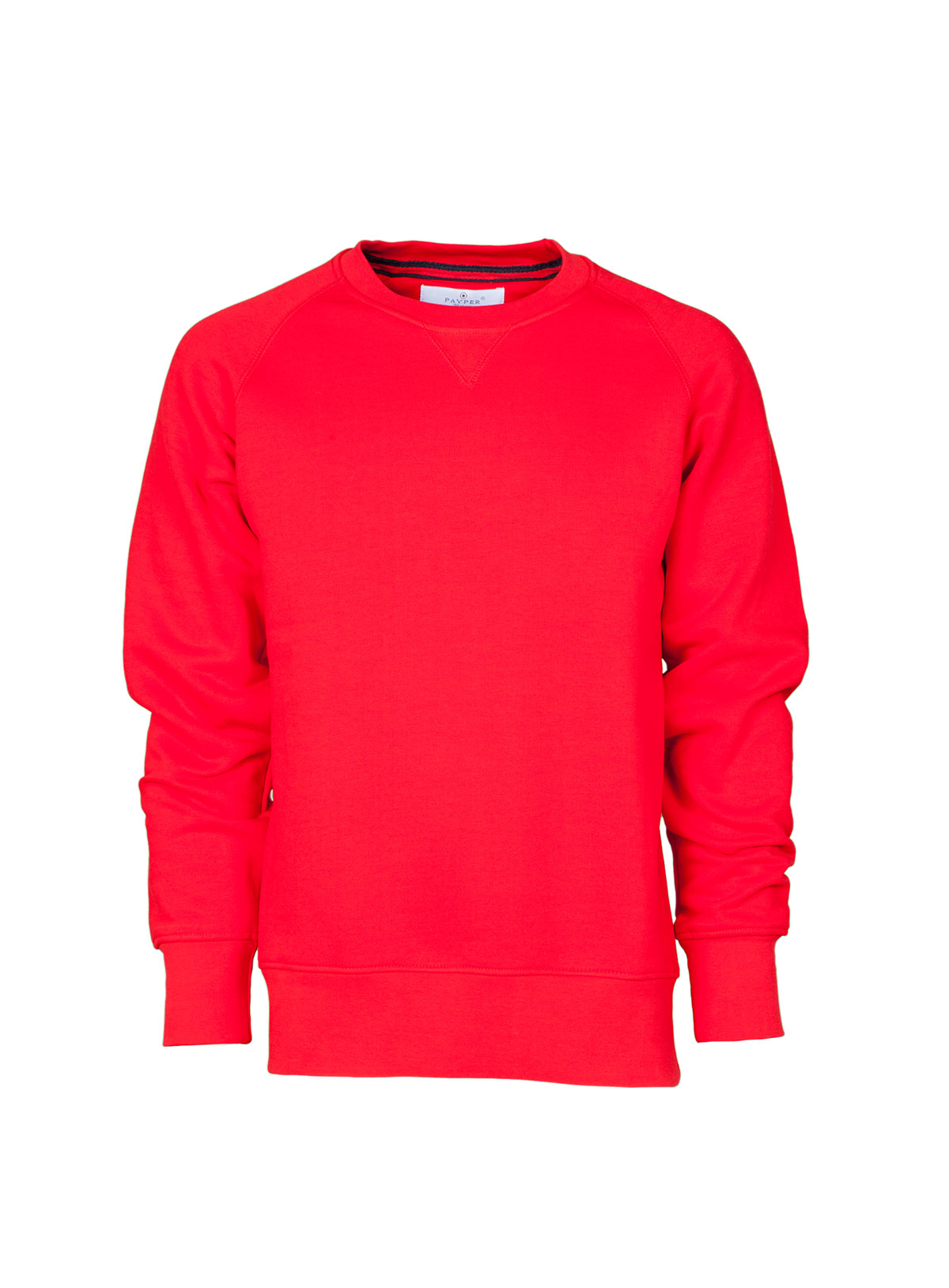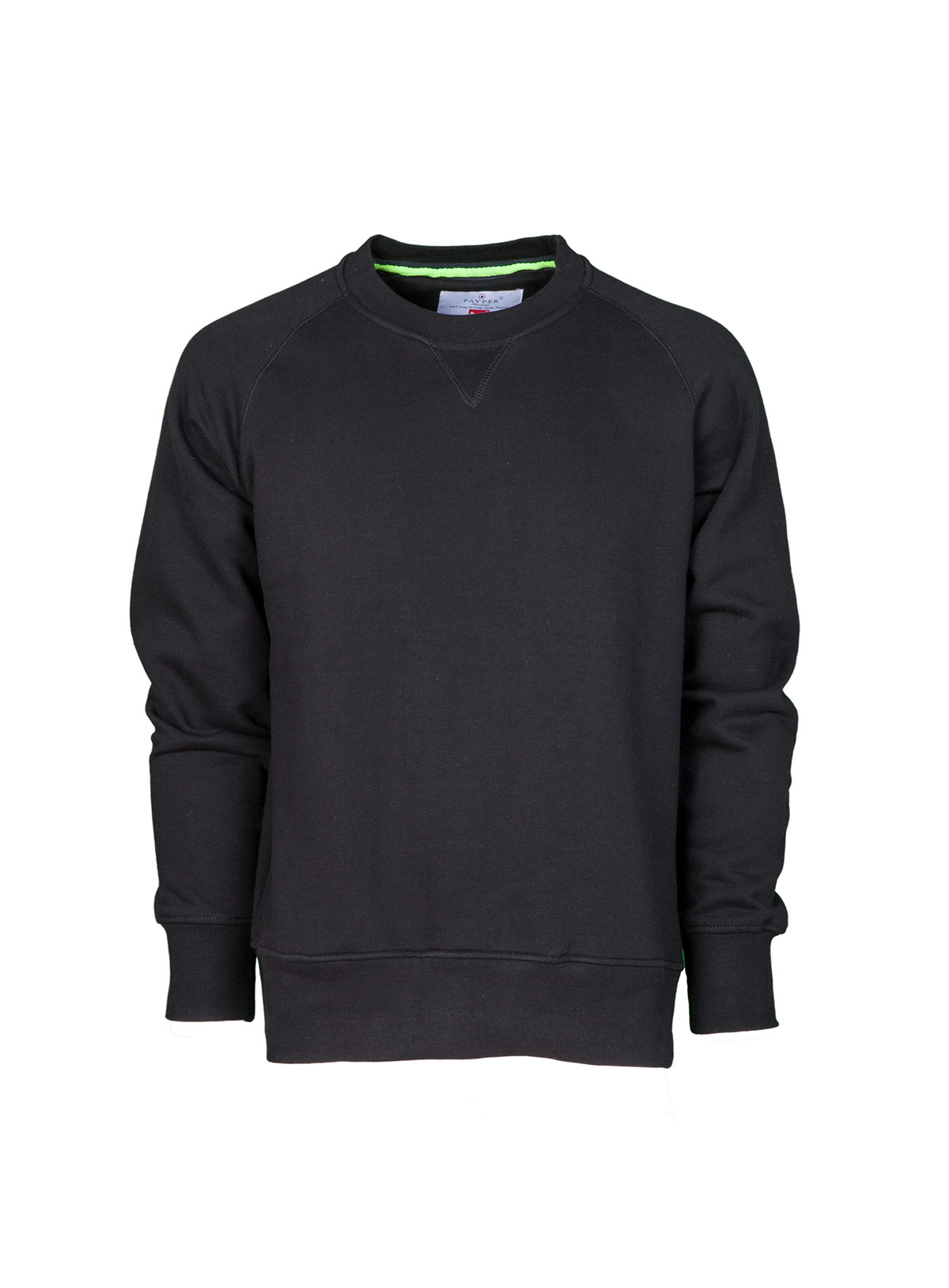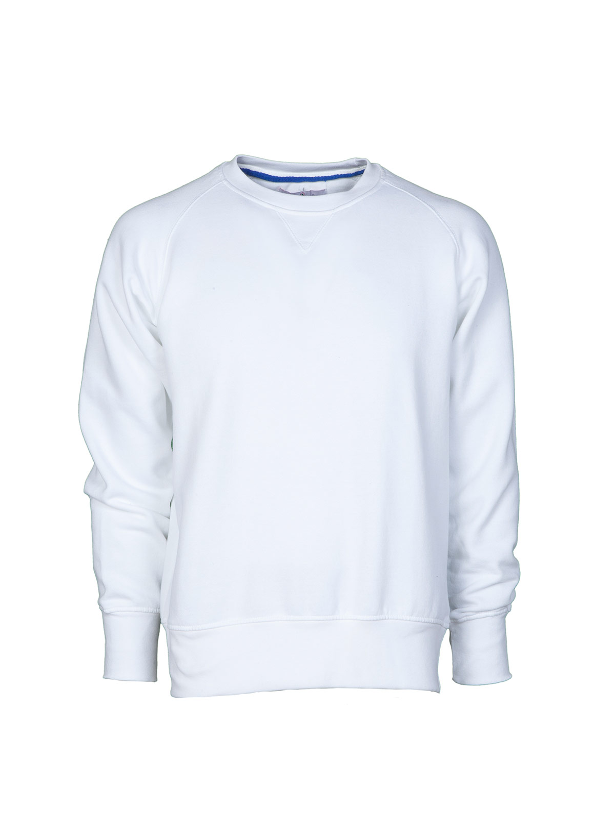Felpa da uomo a girocollo, manica raglan, cucitura estetica a V al collo; polsini e vita in costina elasticizzata, cuciture rinforzate.