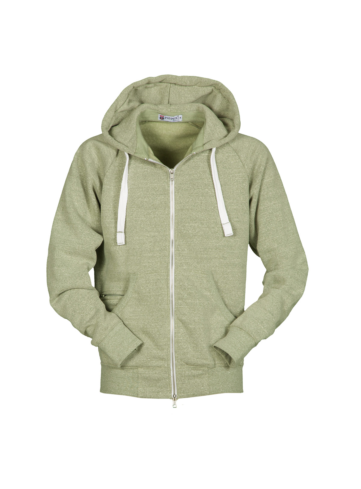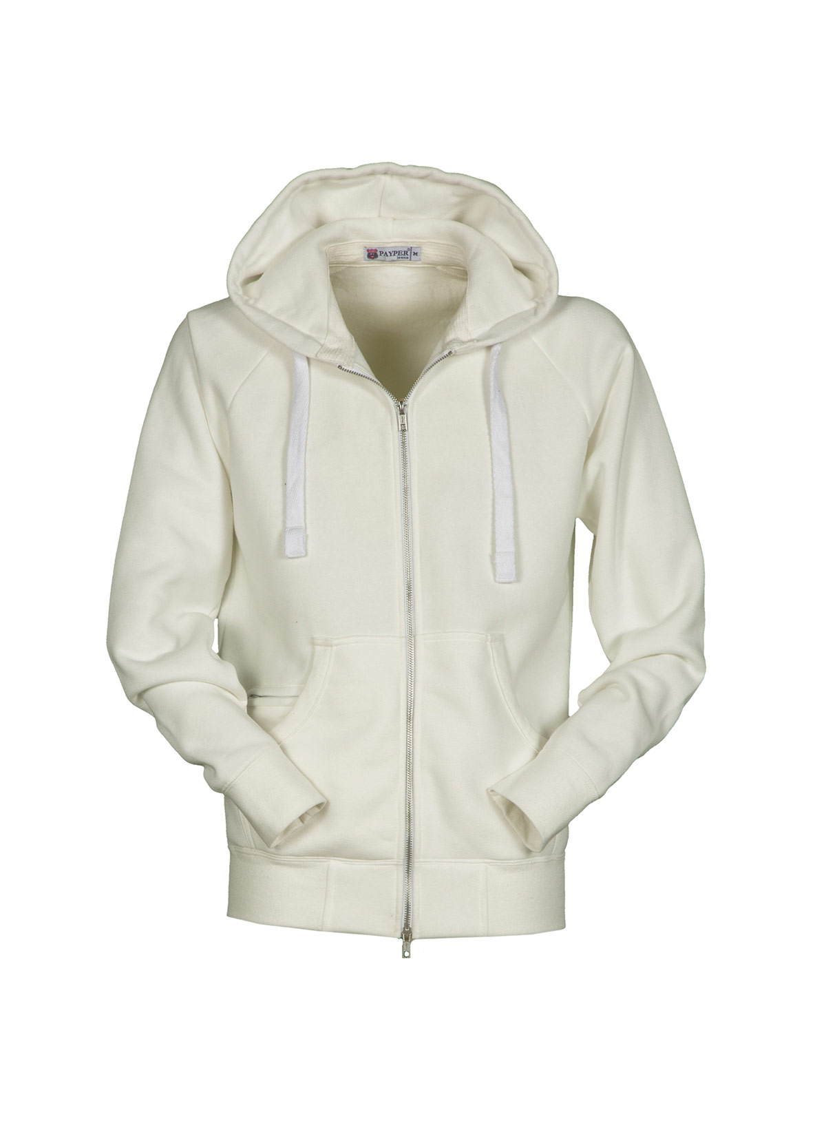Felpa da uomo a zip intera di metallo con doppio cursore, cappuccio con coulisse con anelle in metallo e cordino bianco con cuciture in contrasto, tasche a marsupio con rib, taschino con secur zip, polsini e vita in rib elasticizzato. Effetto Melange bianco (nero per il Bordeaux).