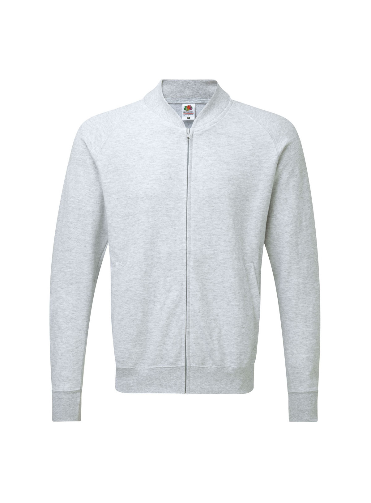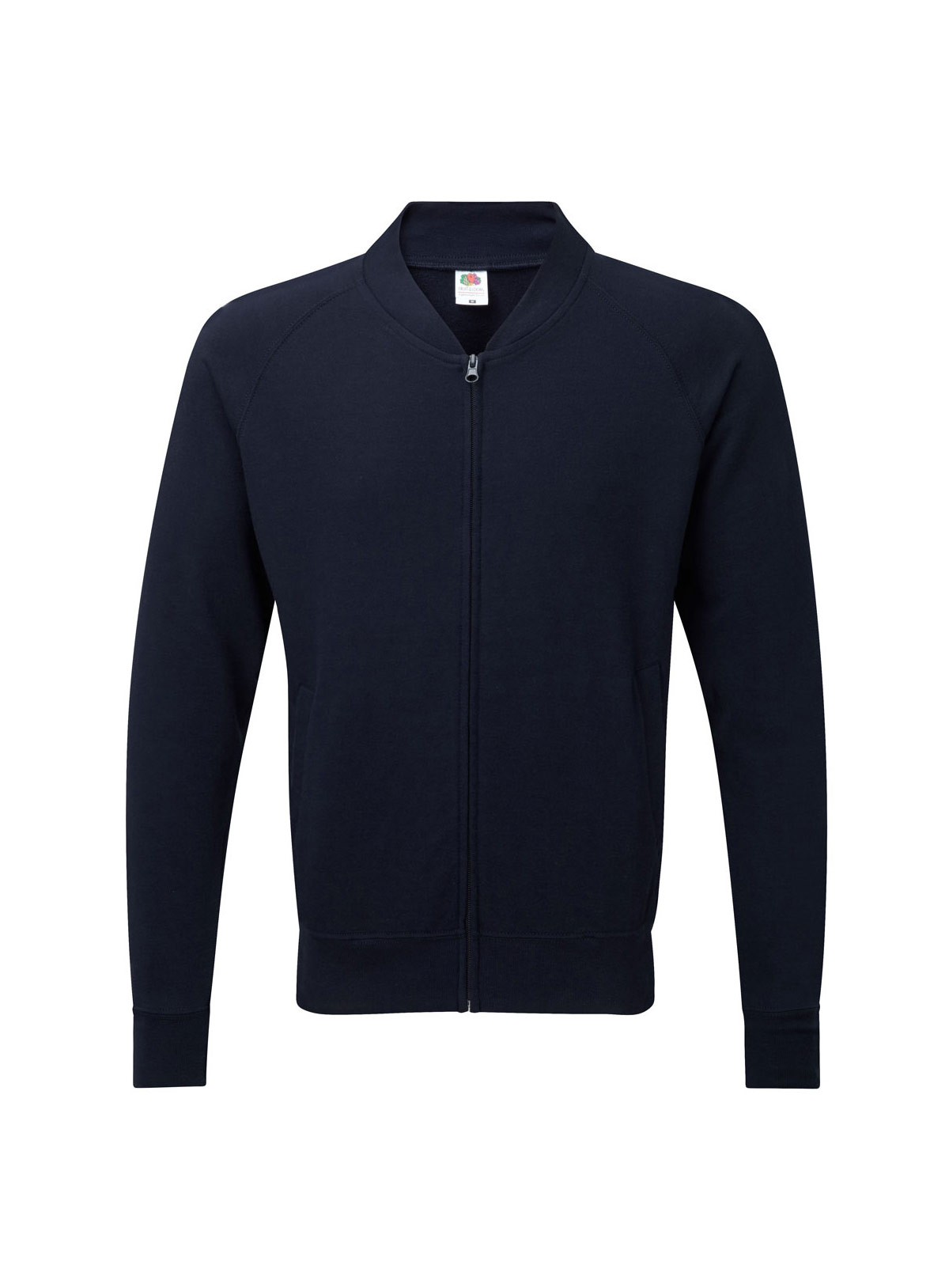 80% cotone belcoro®, 20% poliestere. felpa sgarzata leggera, maniche raglan, zip intera coperta, costina in vita e nei polsini in cotone e lycra. cuciture laterali 240 g/m²