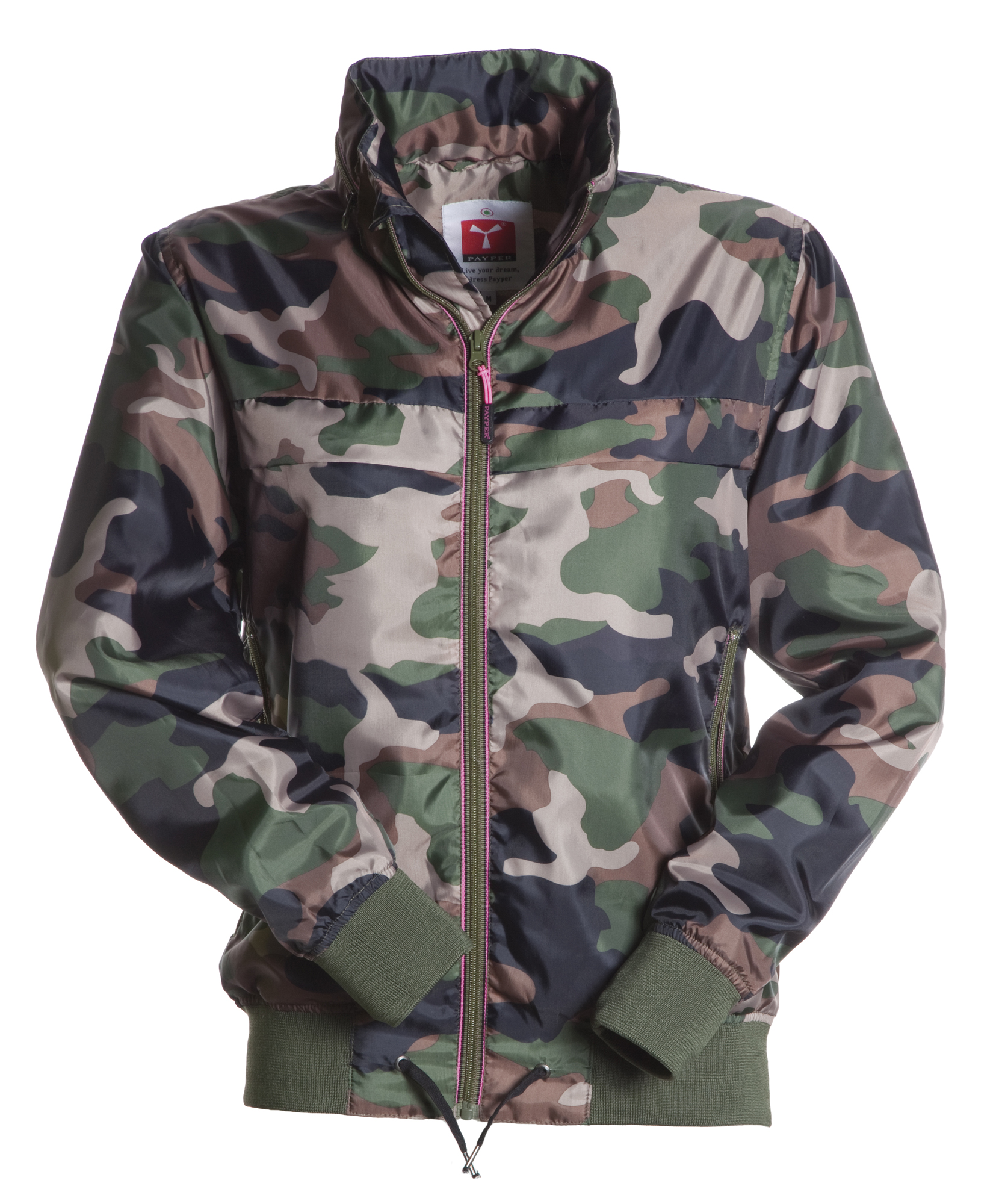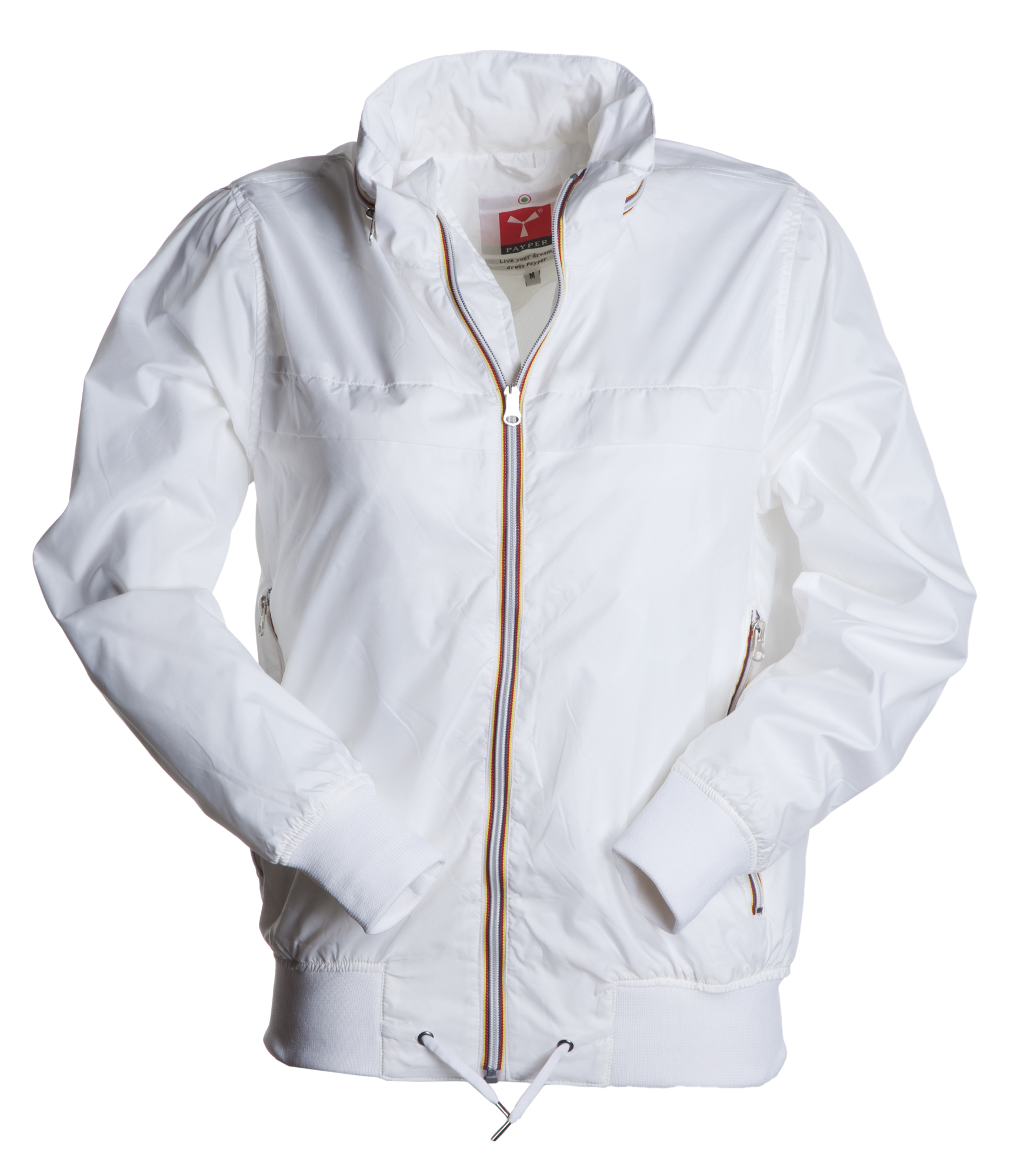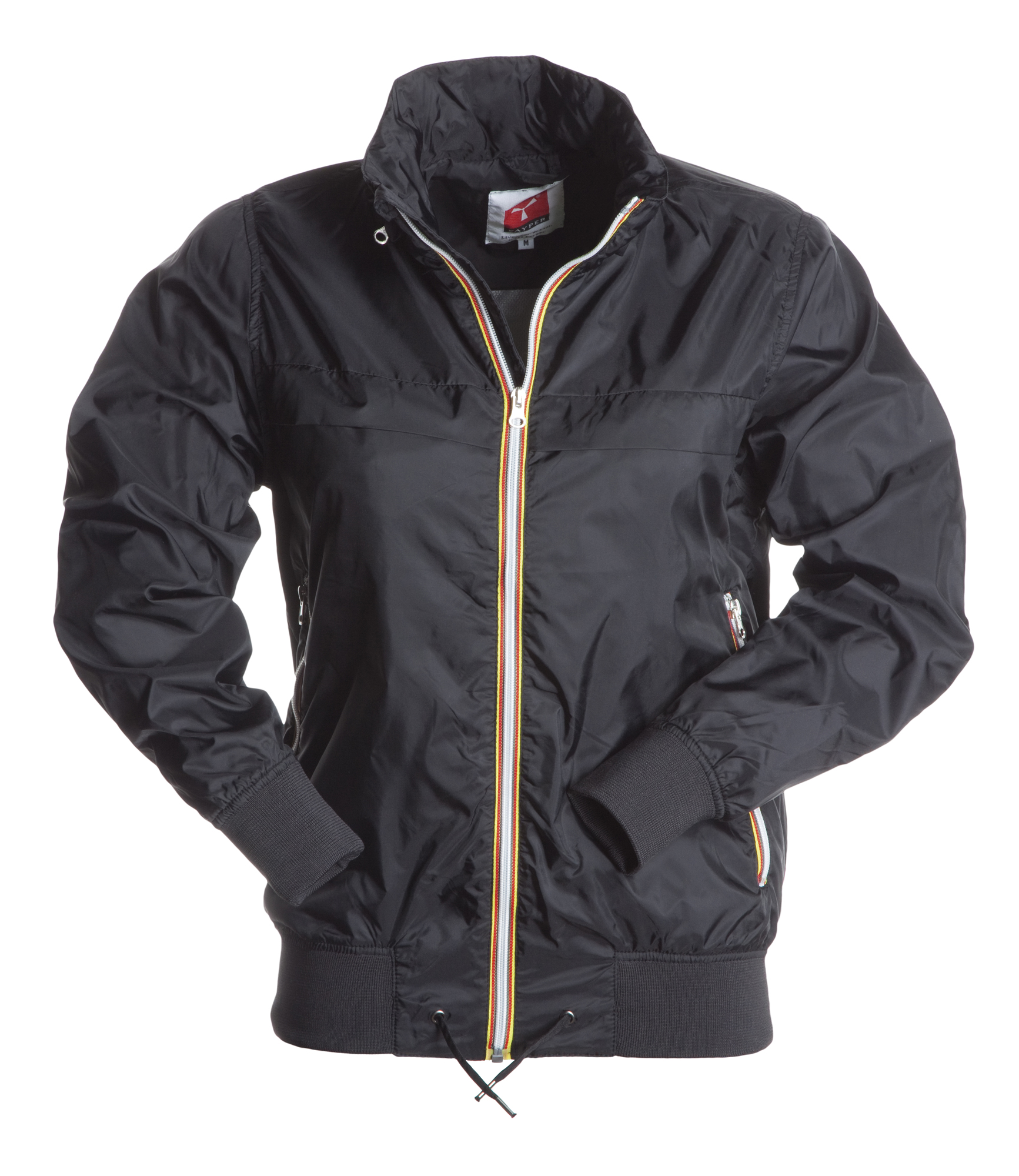 Giubbino con cappuccino richiudibile nel colletto, polsini e vita in rib e coulisse di regolazione, profilo a contrasto nel colletto e alle cerniere; interno non imbottito, una tasca interna.