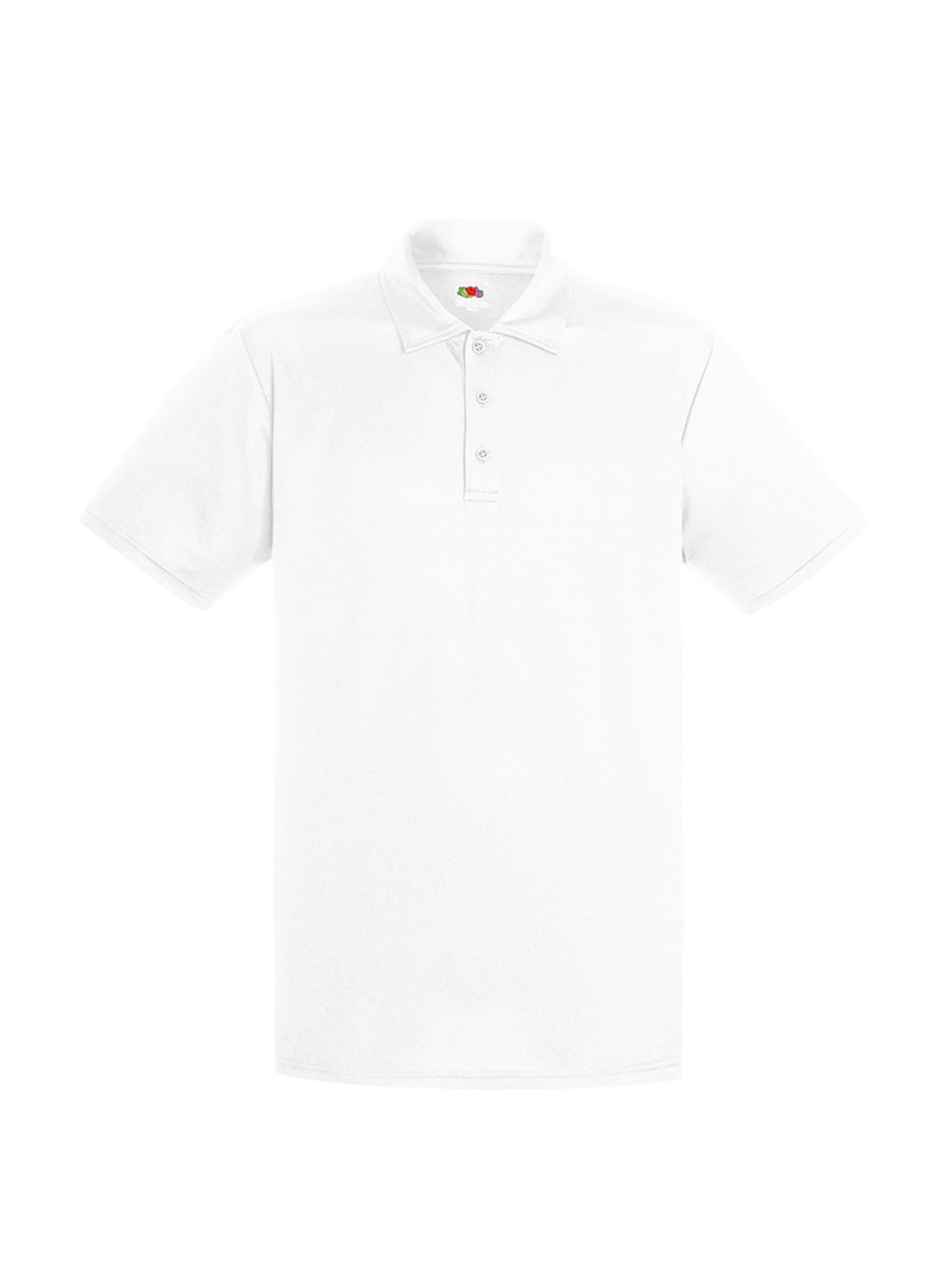 Polo manica corta dritta, 3 bottoni tono su tono, cuciture laterali.