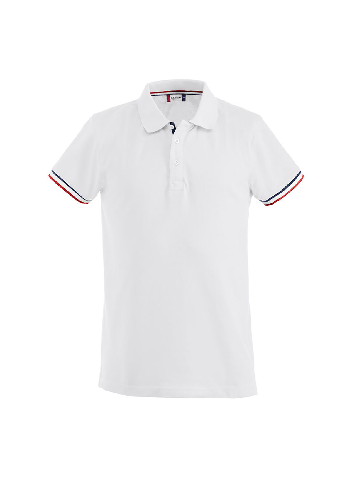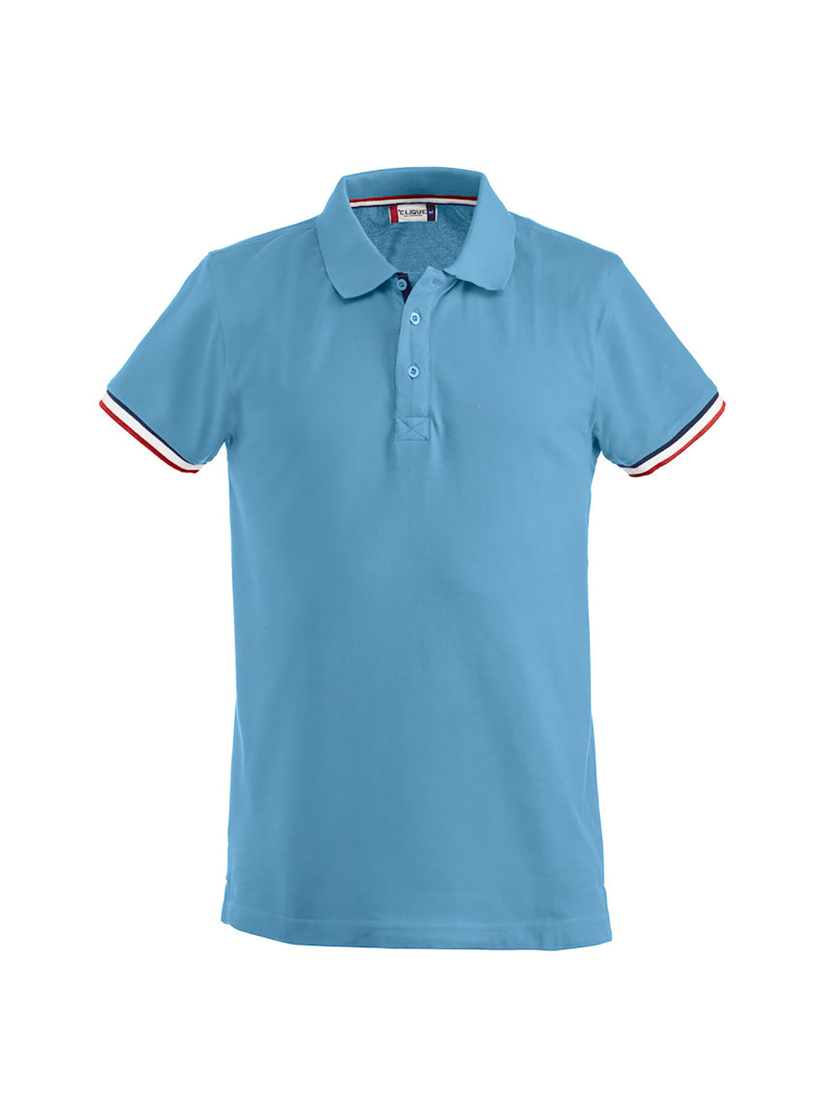 Polo mezze maniche tre bottoni. Colletto reverse, nastrino collo, bordo manica e spacchetti laterali multi-colore. Vestibilità slimfit.