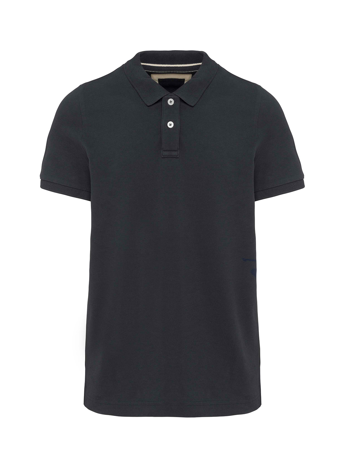 Colletto a costine. Doppio nastrino di rinforzo con motivo spigato su collo e spacchetti laterali. Pattina con 2 bottoni a contrasto. Finitura a doppia impuntura a fondo capo e a costine a fondo manica. Il prodotto è stato sottoposto a un trattamento speciale che gli conferisce un aspetto volutamente invecchiato. Tale metodo artigianale comporta variazioni di colore da un prodotto all’altro, rendendo ogni pezzo unico e irripetibile. Nessuna etichetta con il nome della marca sul collo; solo un’indicazione della taglia per semplificare la personalizzazione.