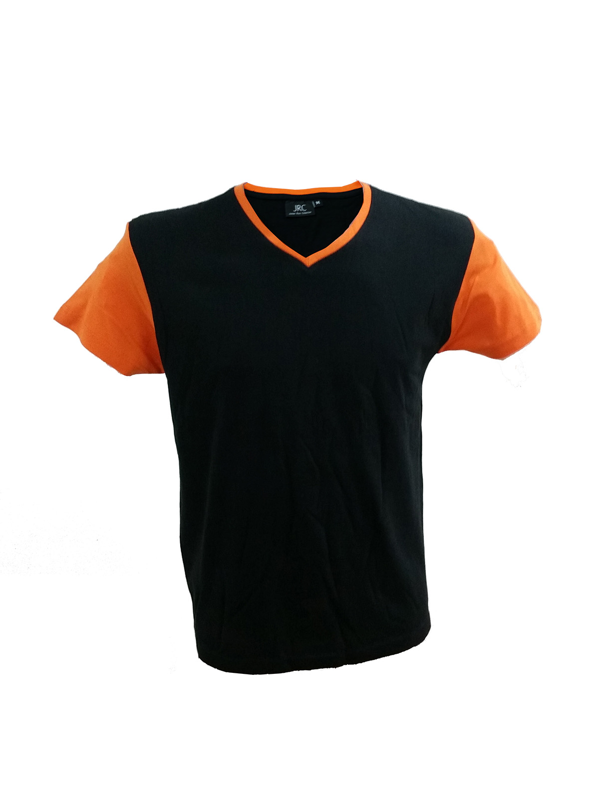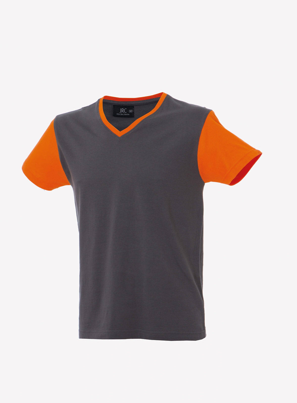 T-shirt manica corta collo a V – Colletto basso h cm 1.2 – Maniche e colletto in contrasto