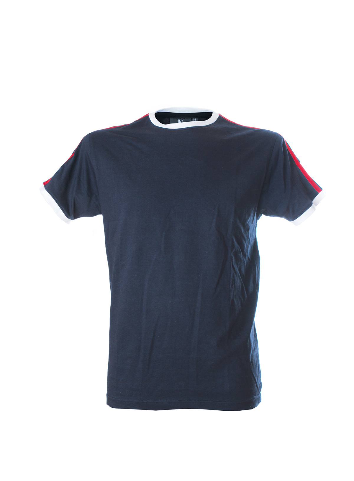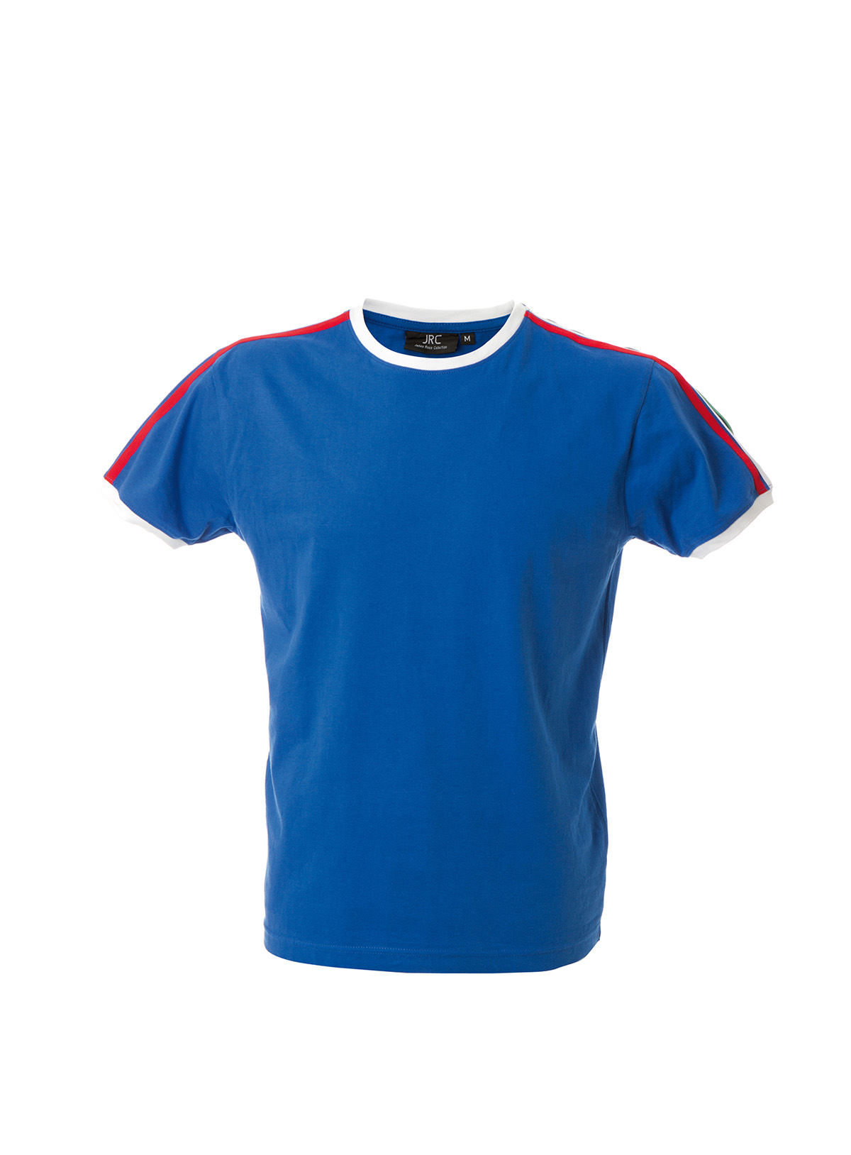 T-shirt manica corta girocollo – Colletto e fondo manica in contrasto – Tre strisce in tessuto tricolore sulle spalle