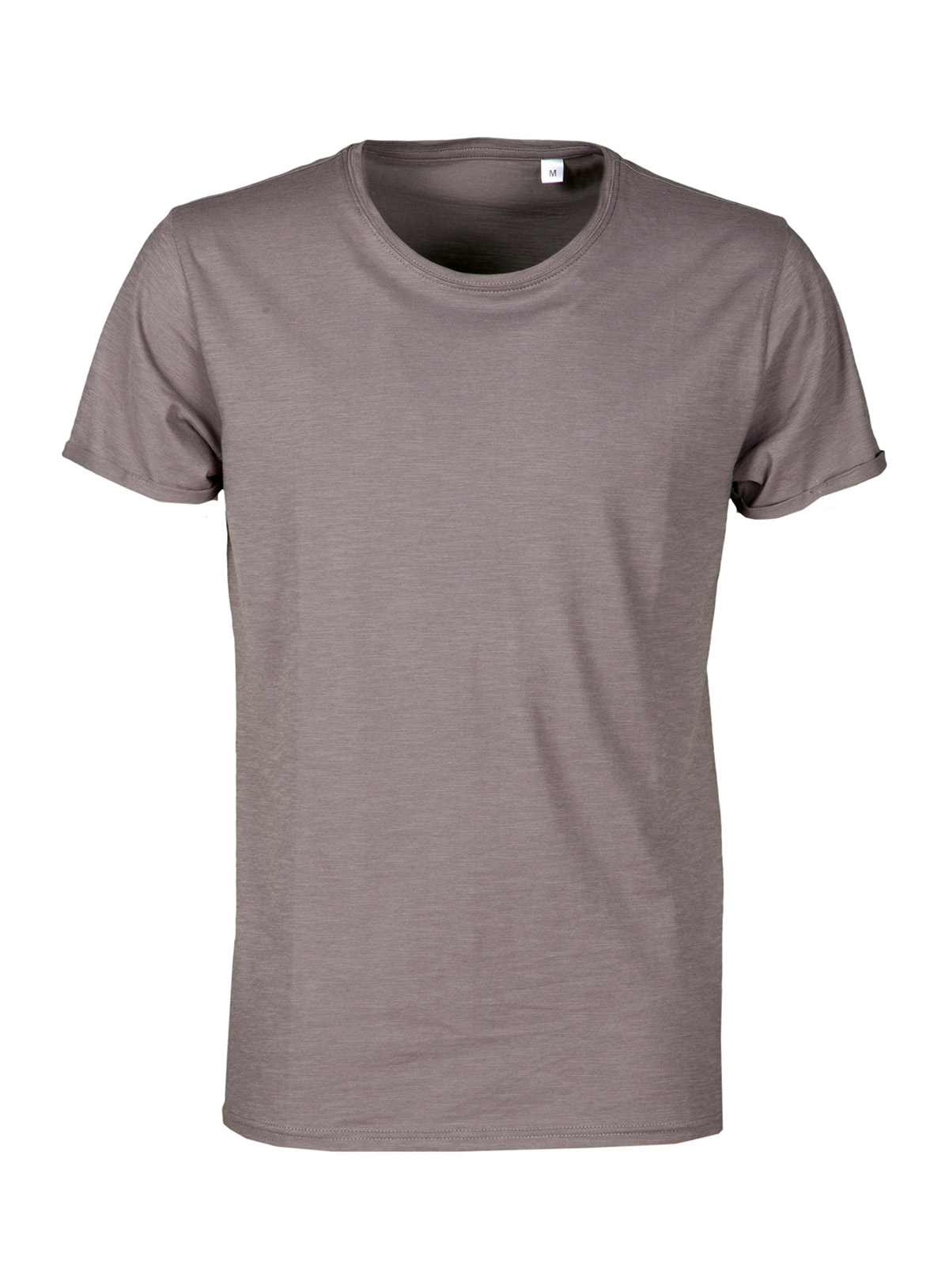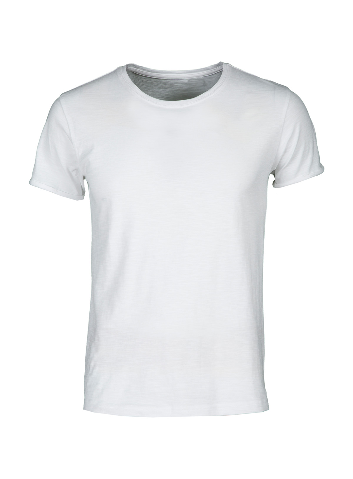 T-shirt neutra senza etichette e stampe a transfer, ideale da personalizzare; girocollo da 1 cm leggermente ampio e basso in cotone e spandex, spalle calibrate con cucitura doppia interna, maniche strette e con fine risvolto, cucitura laterale per una vestibilità più precisa.