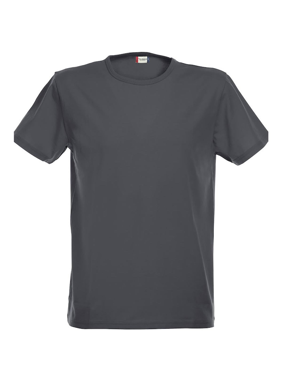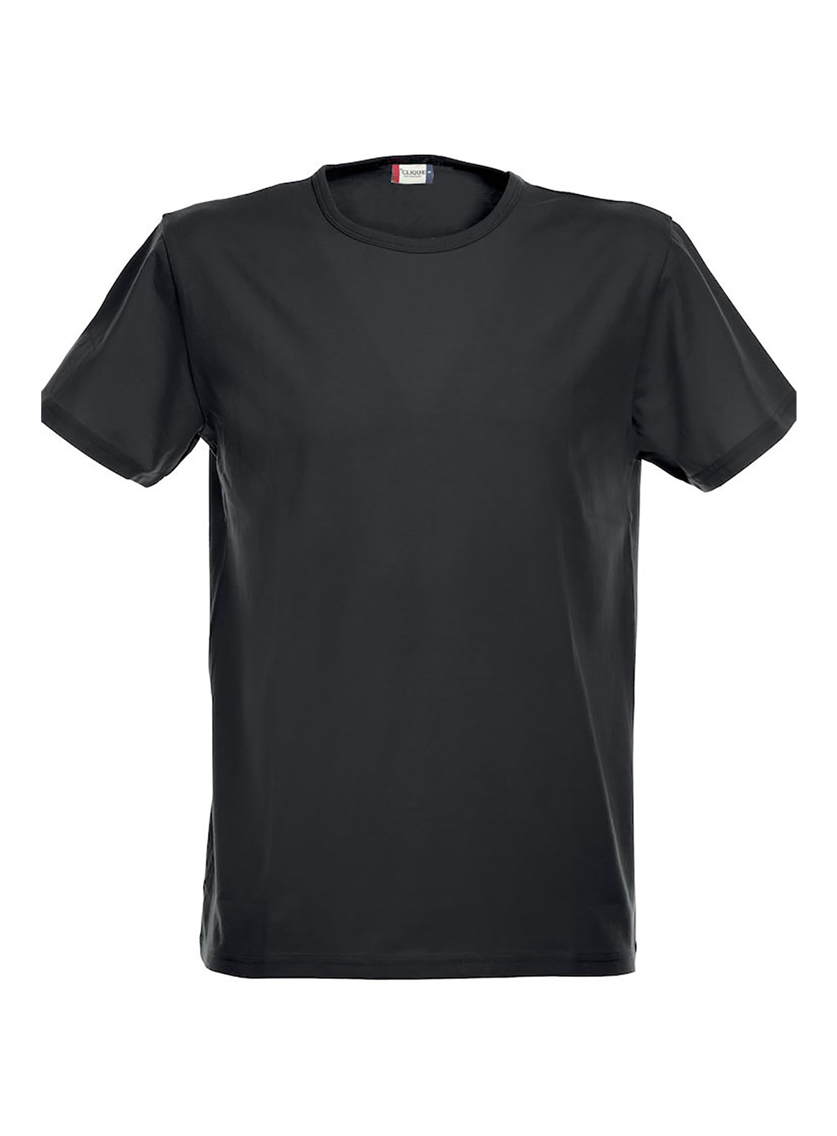 T-shirt elasticizzata. Tessuto morbido trattato con enzimi. Girocollo cucito a collaretto. Nastrino di rinforzo. Etichetta ricamata.