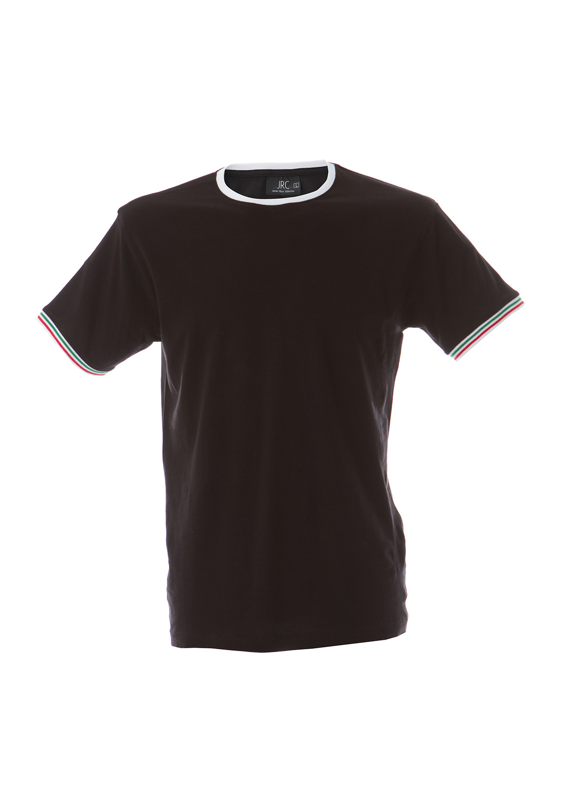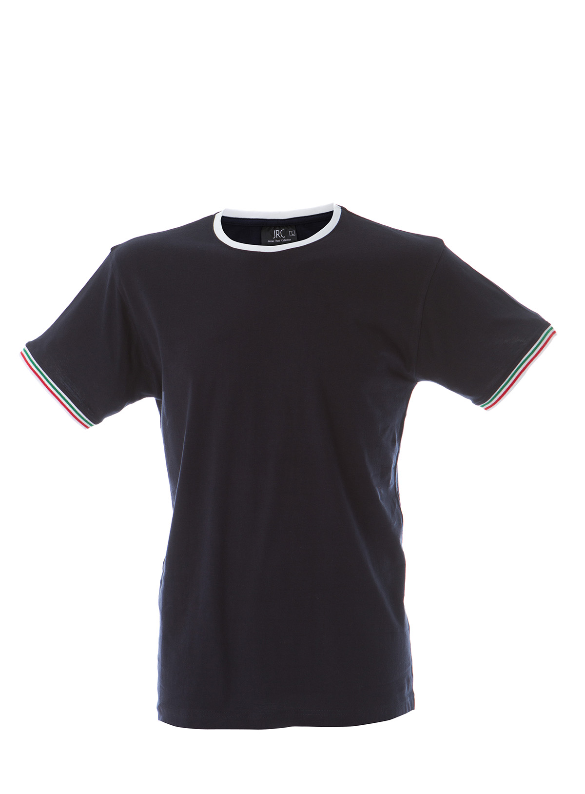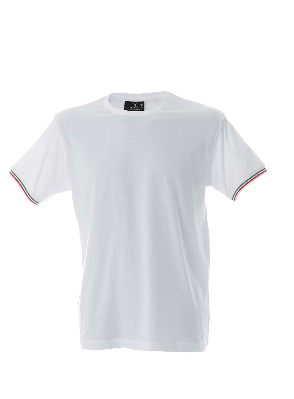 T-shirt manica corta girocollo – Colletto basso h. cm. 1,3 in contrasto – Tricolore italiano nel fondo manica