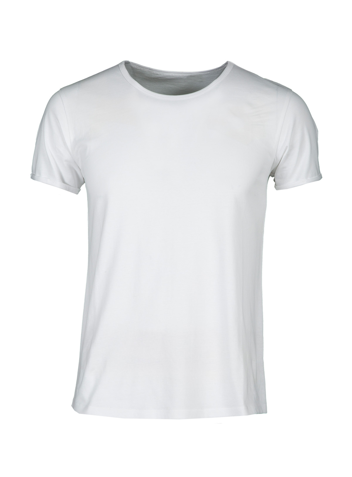 T-shirt manica corta con girocollo leggermente ampio con bordino fine, maniche corte e strette finite con fine risvolto, cucitura laterale per una vestibilità più precisa.